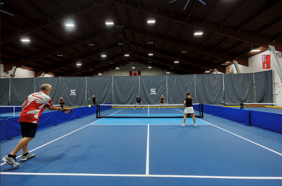 Avoid the outdoor elements and come play on our four, professional indoor Pickleball courts! All experience levels welcome. To play, you must become a Sarnia Golf & Curling Club member (either as a Social, Curling or Golf member), with Pickleball available as an add-on for an additional $150+HST. Choose from two membership options: "Pickleball - Social" or "Pickleball - Social Couple."